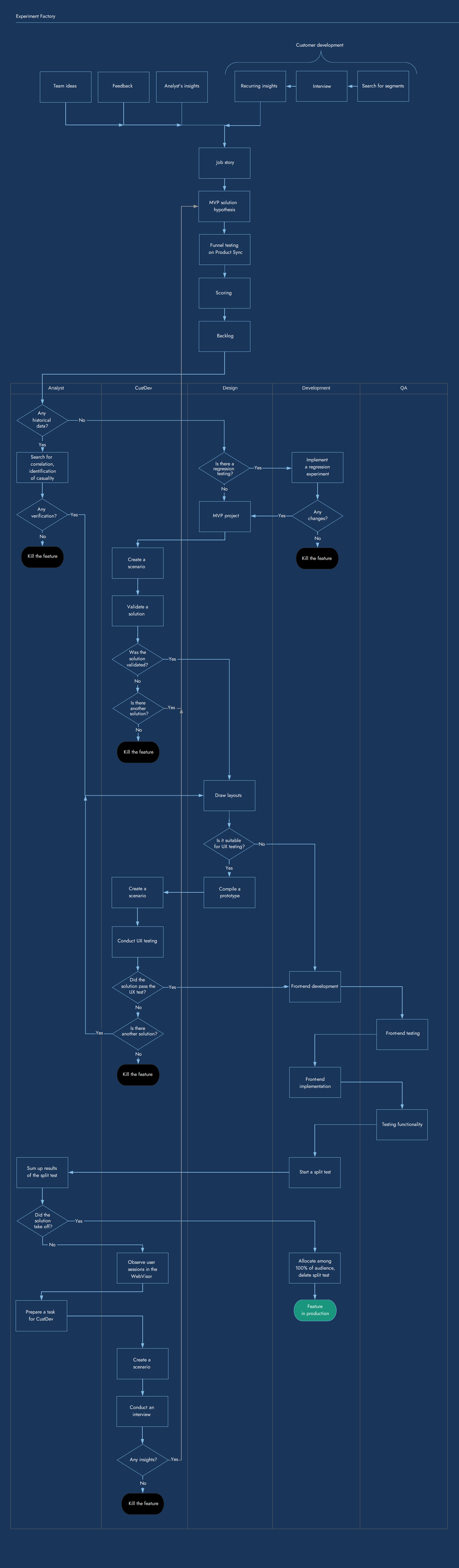 As a matter of fact, the aim of the whole scheme is to kill the feature or a hypothesis at an early as possible stage so that you don’t spend additional time, money and/or resources on something that in the end will have to go the recycle bin.