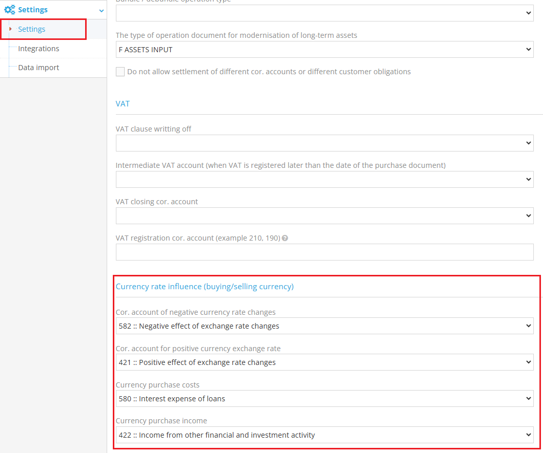 Settings → Settings → Accounting, and verify that the following fields are filled in: