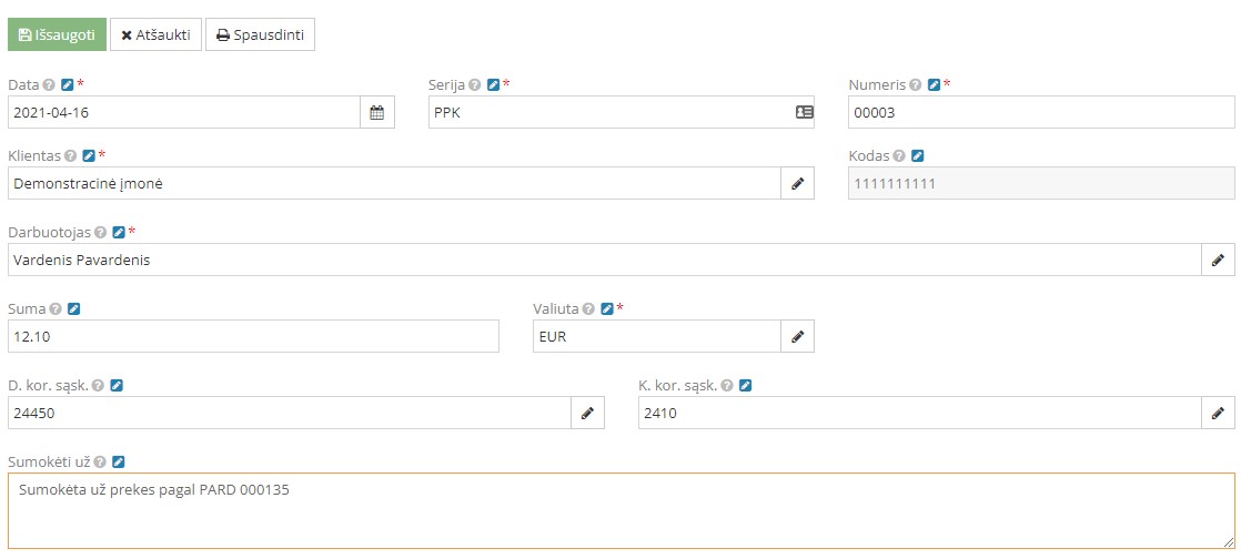 • kaip teisingai užregistruoti pinigų gavimo dokumentą