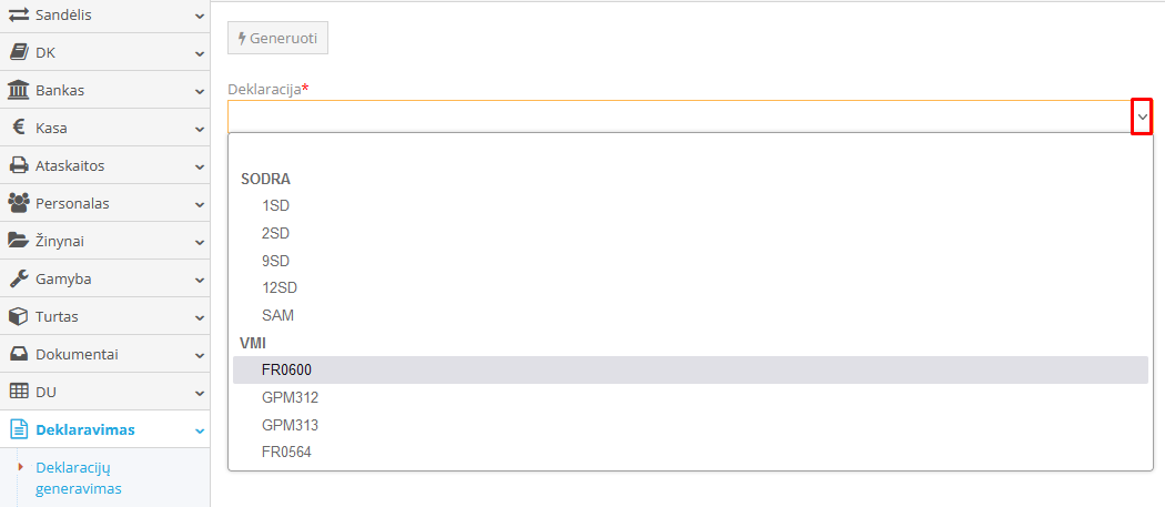 Deklaravimas → Deklaracijų generavimas