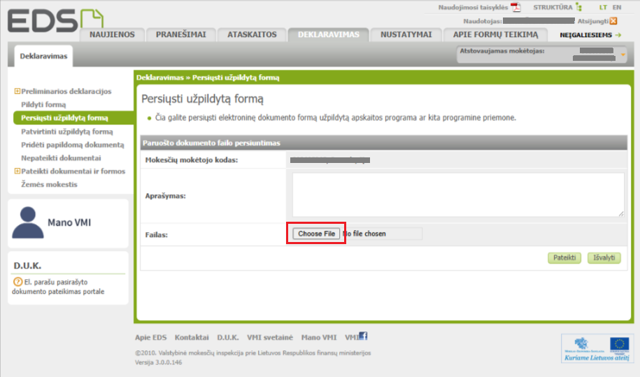 • kaip suformuoti deklaracijos failą ir jį įkelti