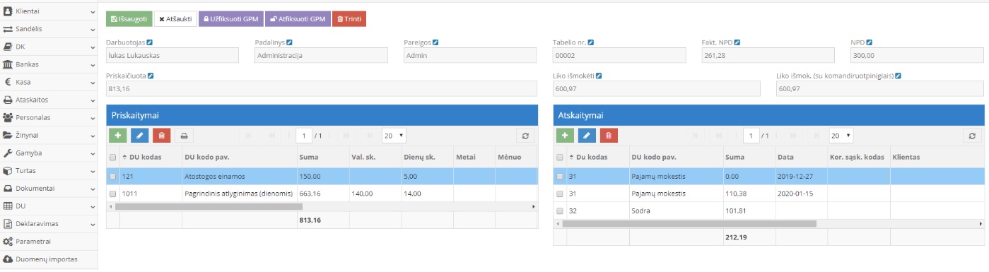 Funkcija užfiksuoti GPM / atfiksuoti GPM galima naudoti, jei atostoginius išmokate prieš atostogas, tuomet nurodote datą prie GPM kada buvo išmokėti atostoginiai (nes ta data ir pateks į GPM deklaraciją ir nepamirškite užfiksuoti GPM).