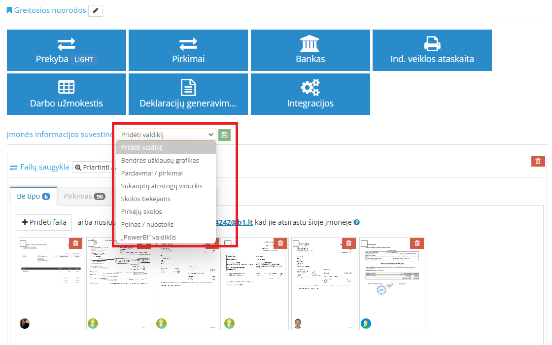 Kaip valdyti greitąsias nuorodas ir įmonės informacijos suvestinę?