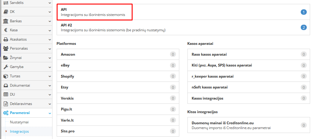 • Integracijos, APIE-parduotuvės įskiepiai, sinchronizavimas su prekybos portalais, Integracijos su kasos aparatais ir POS sistemomis, Kitos integracijos.