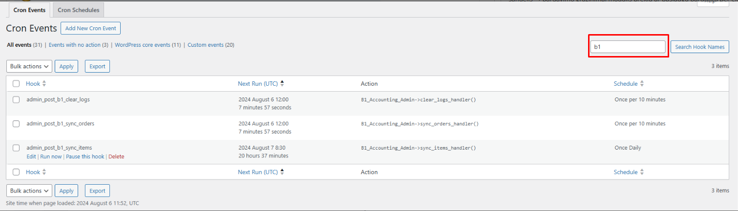 3. surasti „ admin_post_b1_sync_items“ užėjus varnelę atsiras mygtukas „edit“;