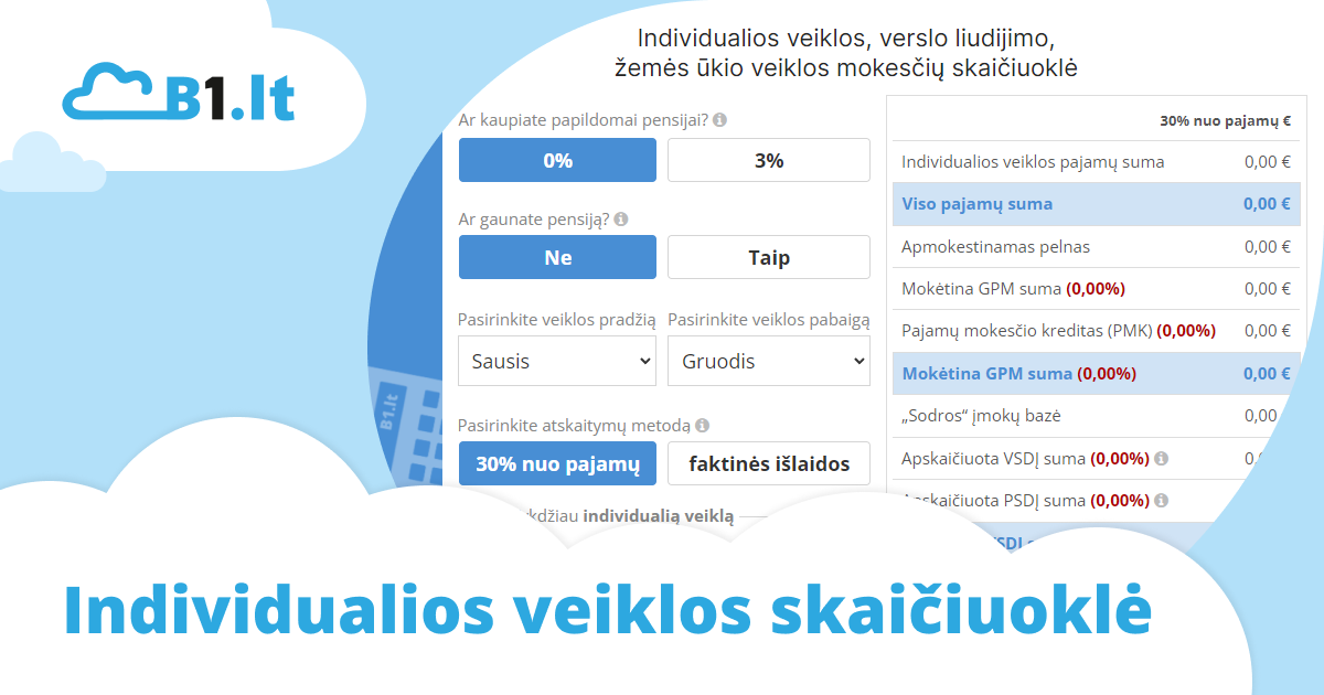 Mokesčius taip pat galima paskaičiuoti individualios veiklos skaičiuoklėje: