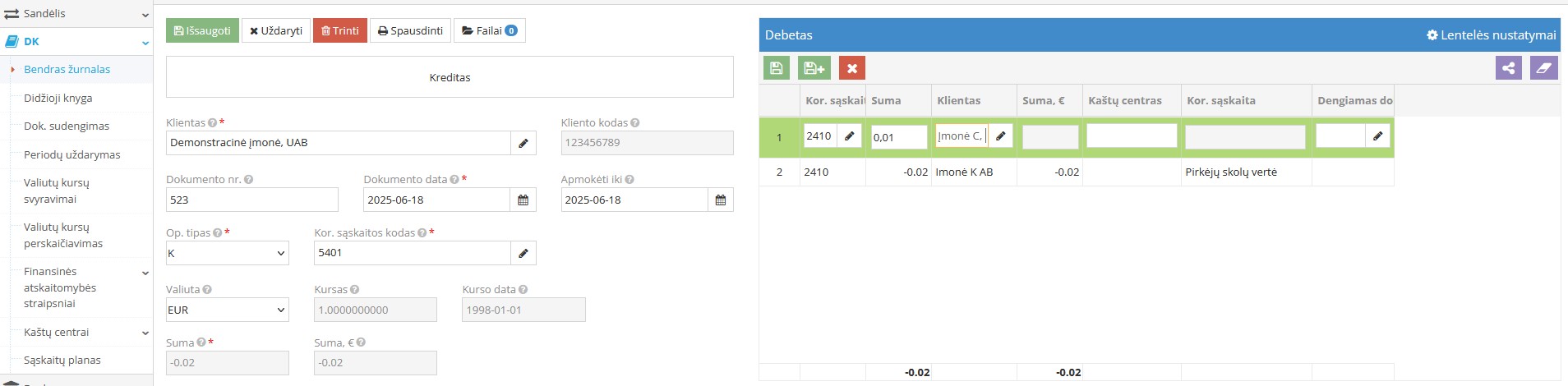 Если при вводе записи через модуль Общий журнал запись исчезает при сохранении, необходимо обратить внимание на введённые позиции. В одной записи не могут одновременно заполняться позиции с символами "+" и "-", чтобы общая сумма записи была равна 0,00. Такие операции нужно регистрировать, создавая новую запись в Общем журнале.