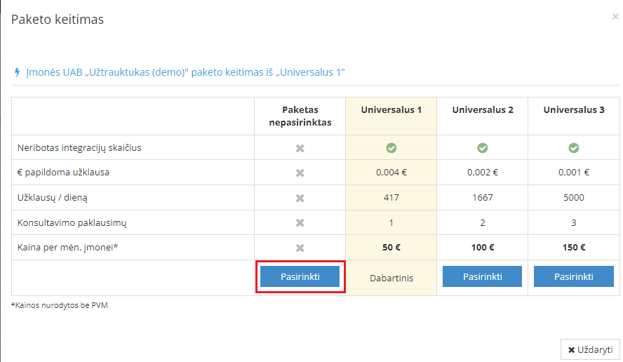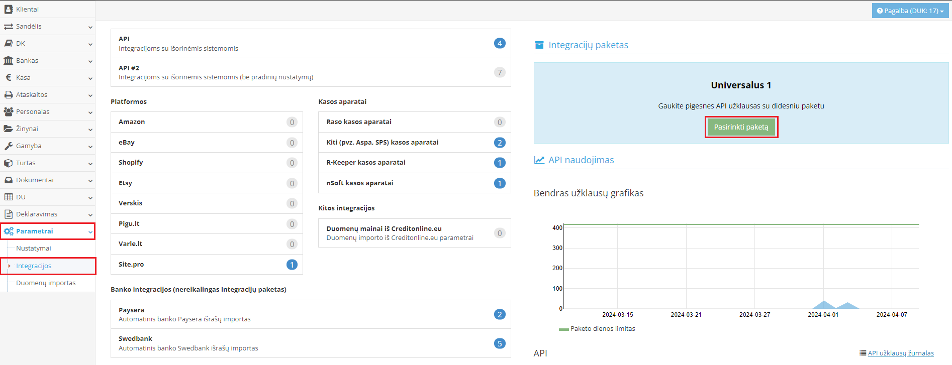 В разделе «Пакет интеграций» нажмите кнопку «Выбрать пакет»