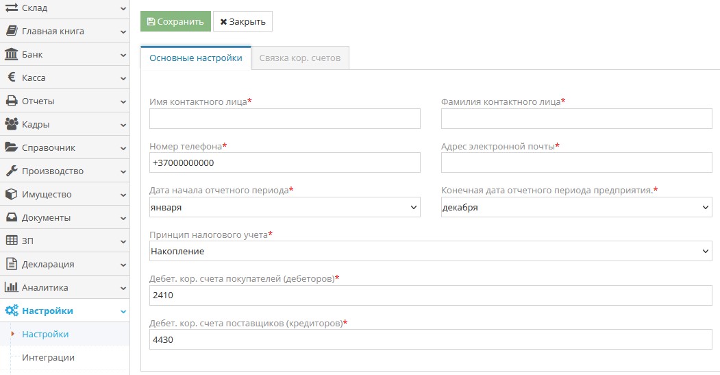 - МодулиМодули, необходимые для учета производственных, торговых, сервисных и других компаний.